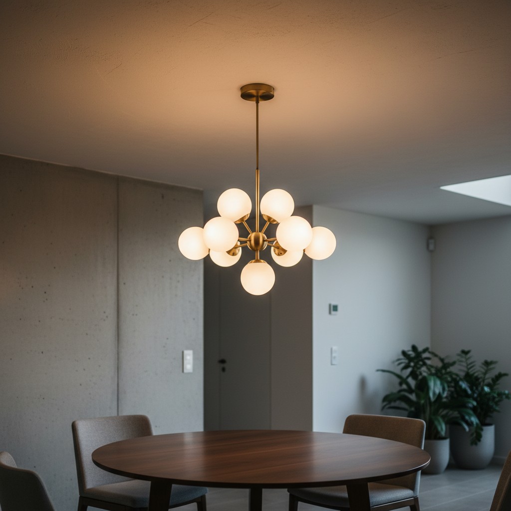 Diese von der Decke hängenden Pendelleuchten werden in Essbereichen, Küchen und Wohnzimmern zum natürlichen Blickfang und tauchen den Raum in ein sanftes, fokussiertes Licht. Dank der großen Auswahl an Formen und Oberflächen passen sie mühelos zu modernem, minimalistischem und klassischem Wohnstil und verleihen jedem Raum Persönlichkeit und Wärme, ohne ihn zu dominieren. Sie eignen sich sowohl für die alltägliche Beleuchtung als auch als dekoratives Element und schaffen in jedem Wohnbereich eine elegante und einladende Atmosphäre.